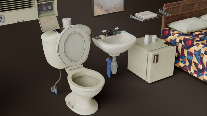 Full textured 80s motel environment set in Blender! Created skillfully by Edward Lim.
