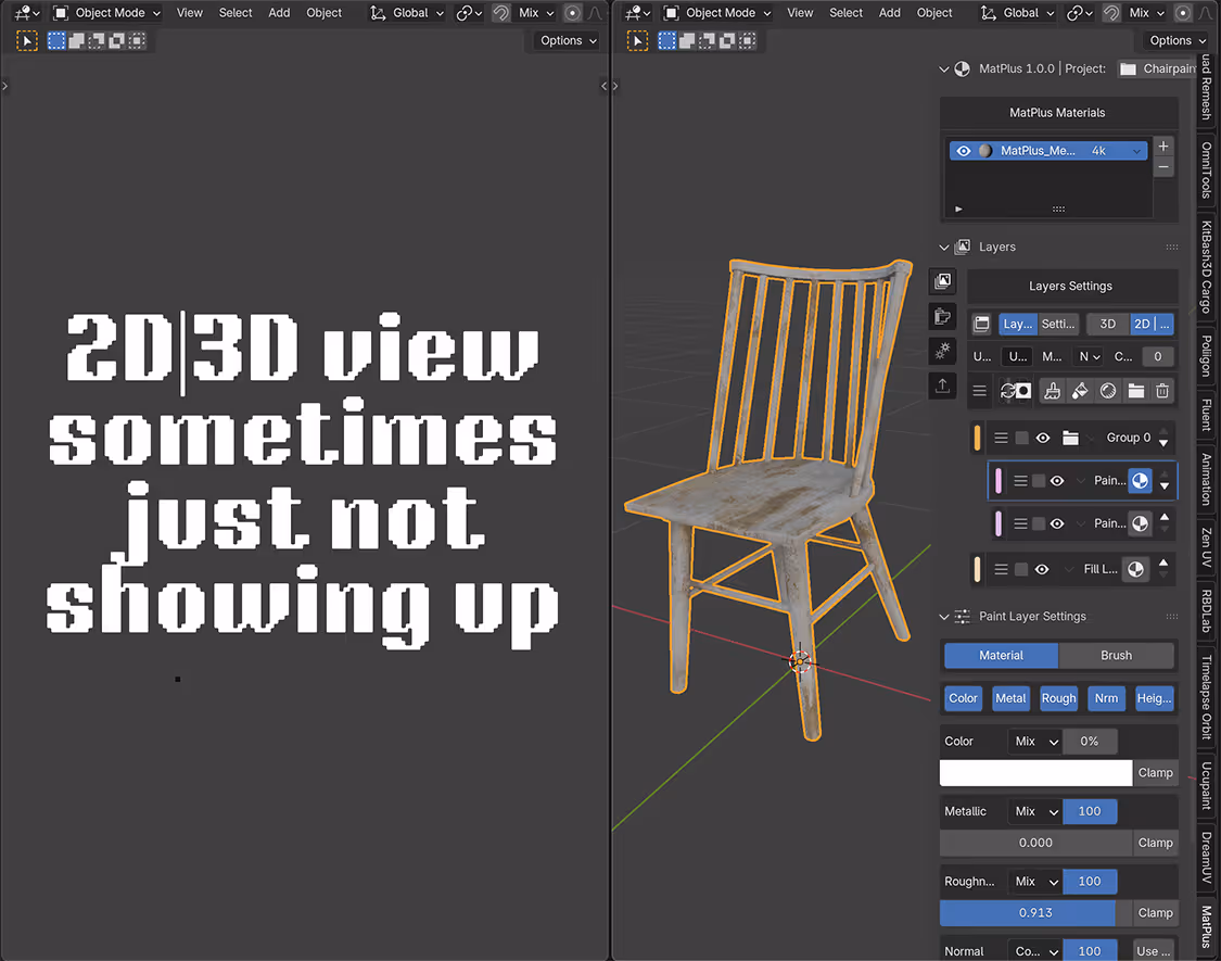 MatPlus, in its current state, is unfortunately riddled with bugs. Something I fully expect will be improved over time. This is version 1.0! But again, I have to mention this cost me $80. It basically wants to be Substance Painter, but in Blender addon form. If they were to iron out some of these bugs and get the UI working like it looks like it should work, then they'll be well on their way.