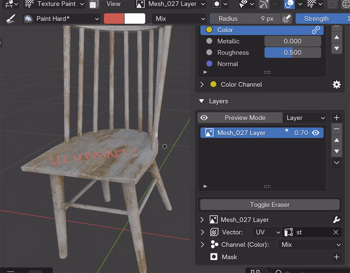 - Something that stays out of the way. Lets me have some texture painting functionality, but lets me work with Blender shader nodes as intended.